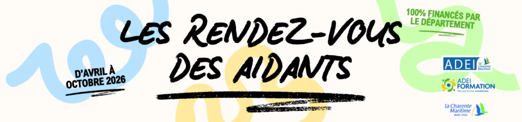 LES MERCREDIS DES AIDANTS Des formations gratuites, proches de chez vous en Charente-Maritime pour vous aider dans votre accompagnement et vos démarches en tant qu’aidant ! S’inscrire à une formation Des formations à l’initiative du département de la Charente-Maritime, organisées par ADEI et ADEI Formation. Des formations pour vous accompagner sur votre rôle d’aidant ! […]